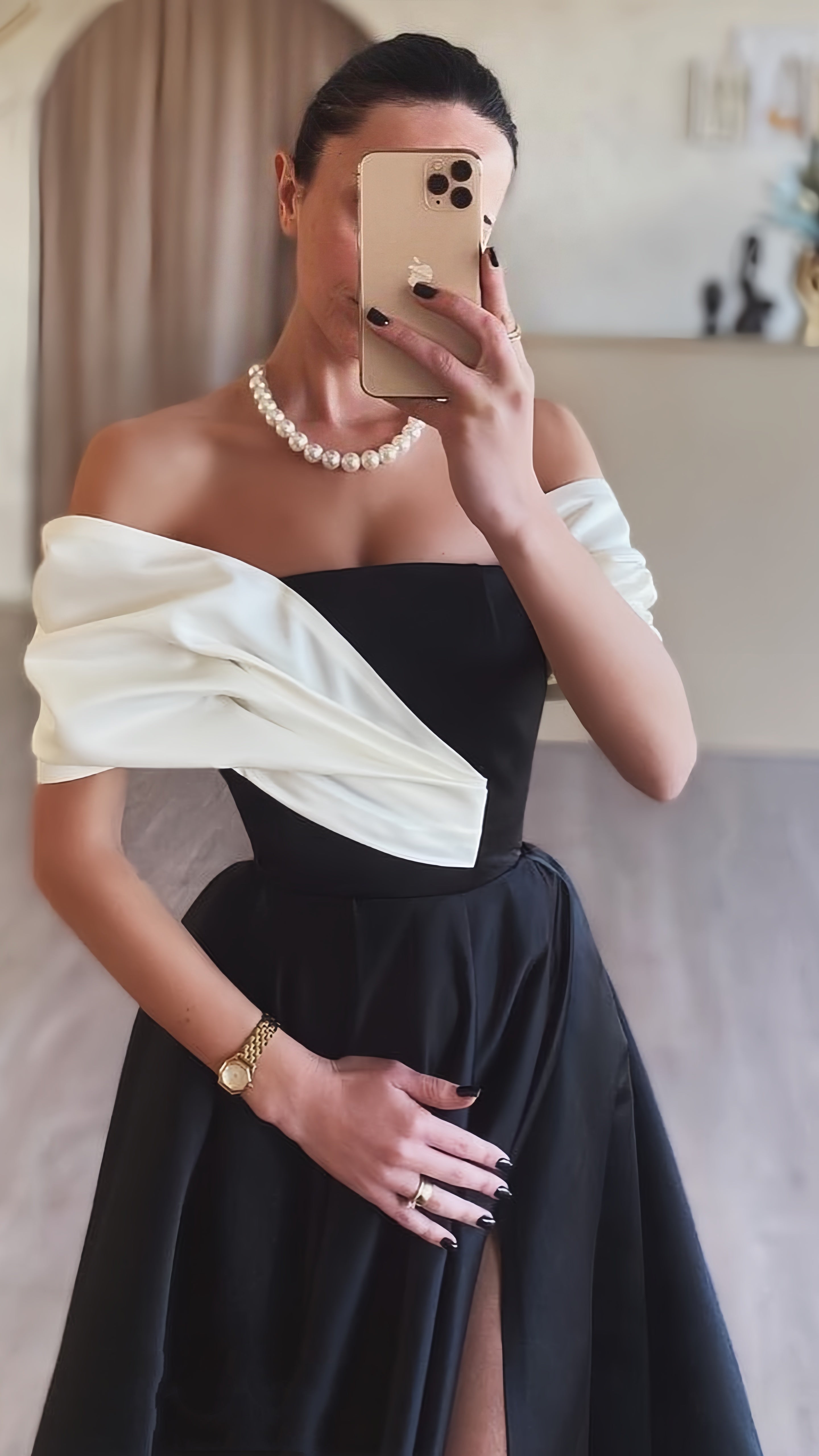 Black White A-Line Prom Dress, Long Evening Formal Gown, HZ0307