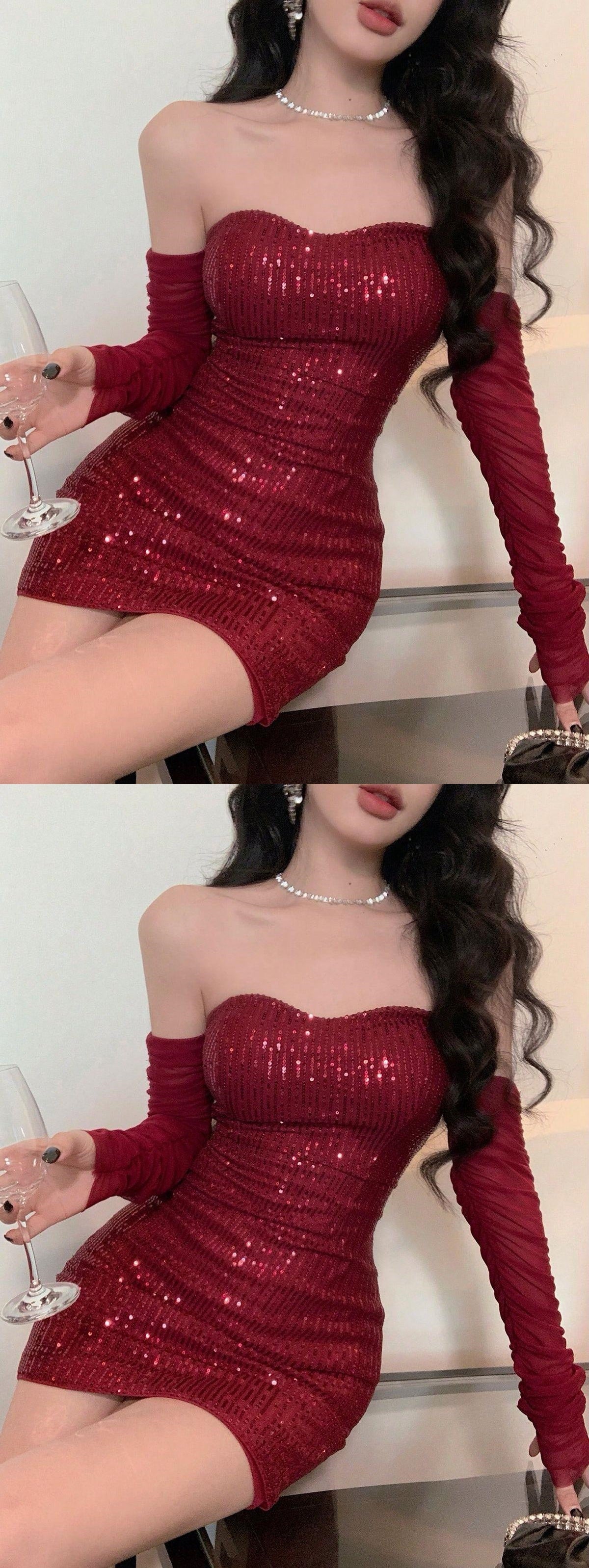 Burgundy Homecoming Dresses Tight Sequin Hoco HZ0307