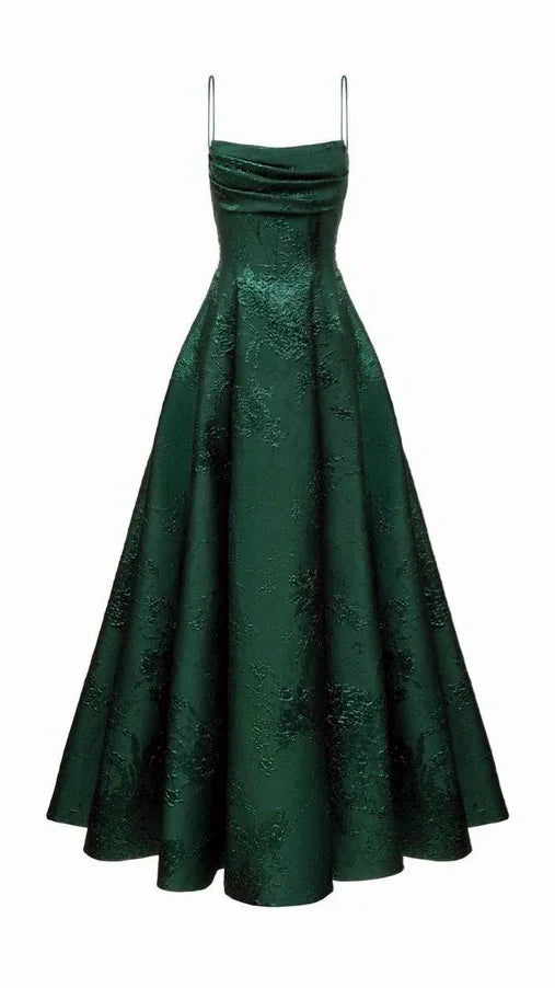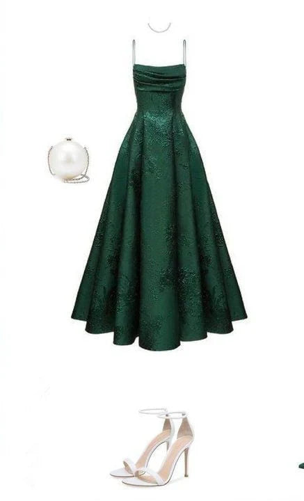 Emerald Green Floral Print A-line Long Prom Dresses Evening Party HZ0307