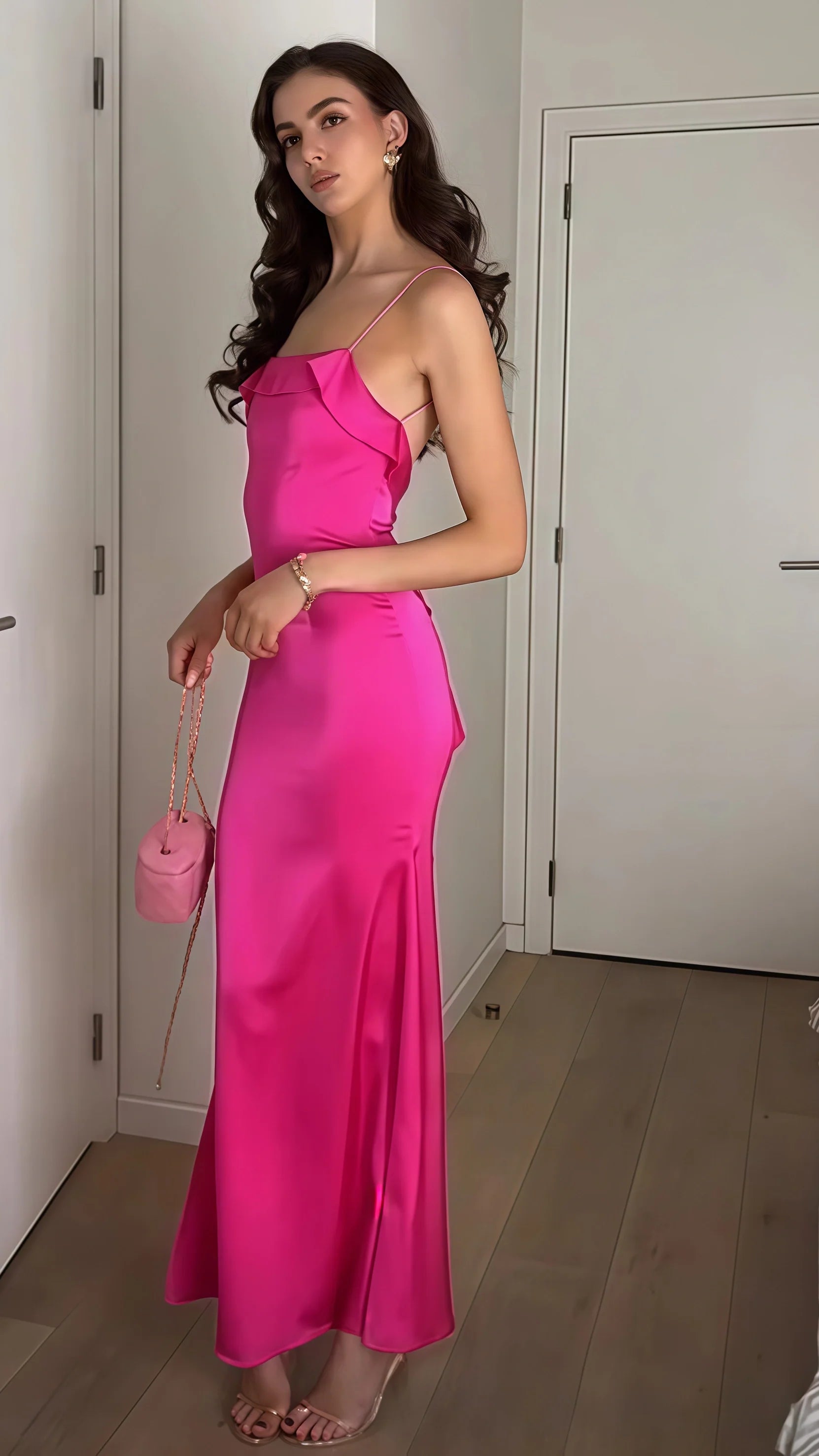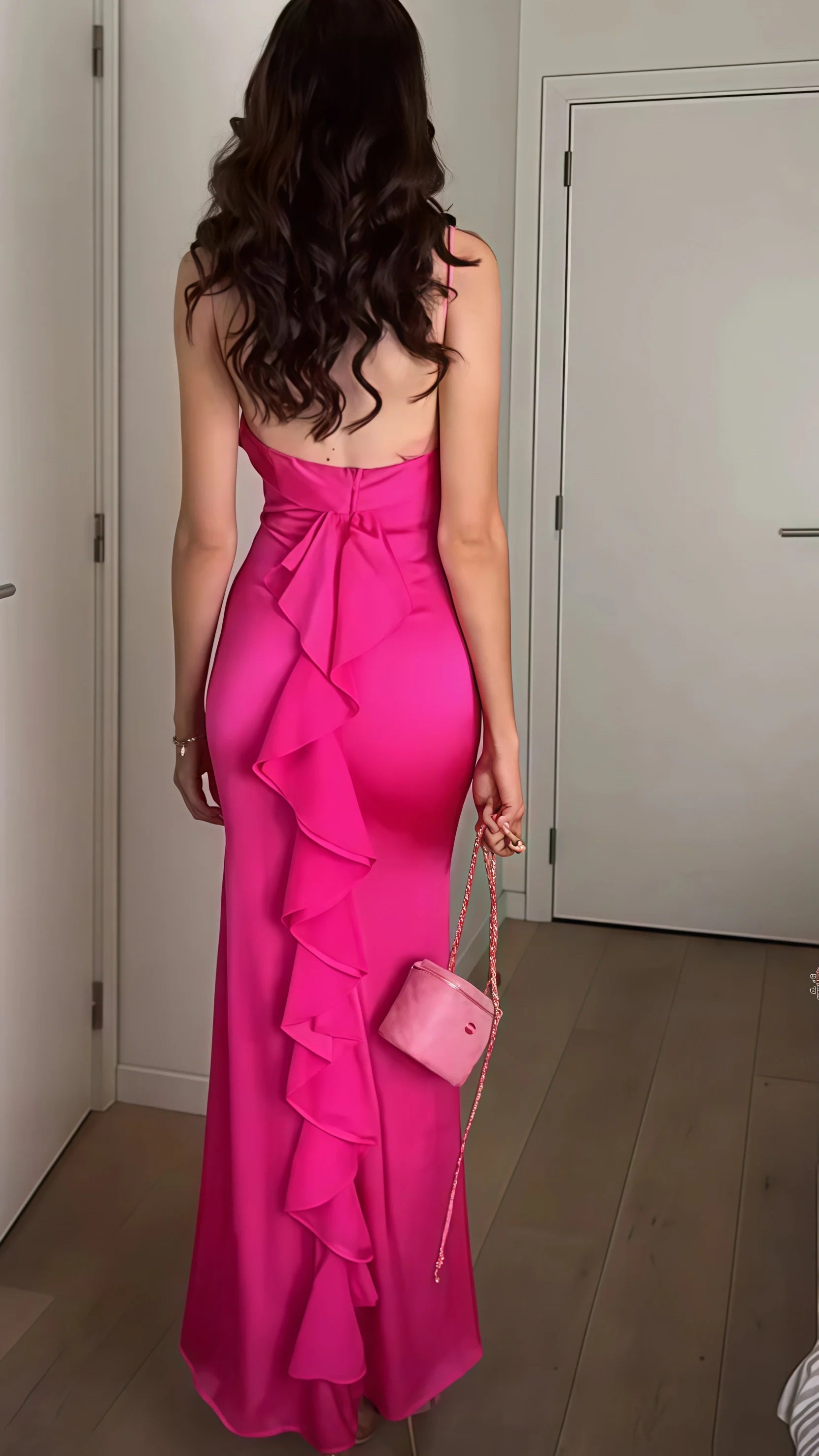 Fuchsia Ruffle Prom Dresses, Sexy Backless Mermaid Party Dress HZ0307