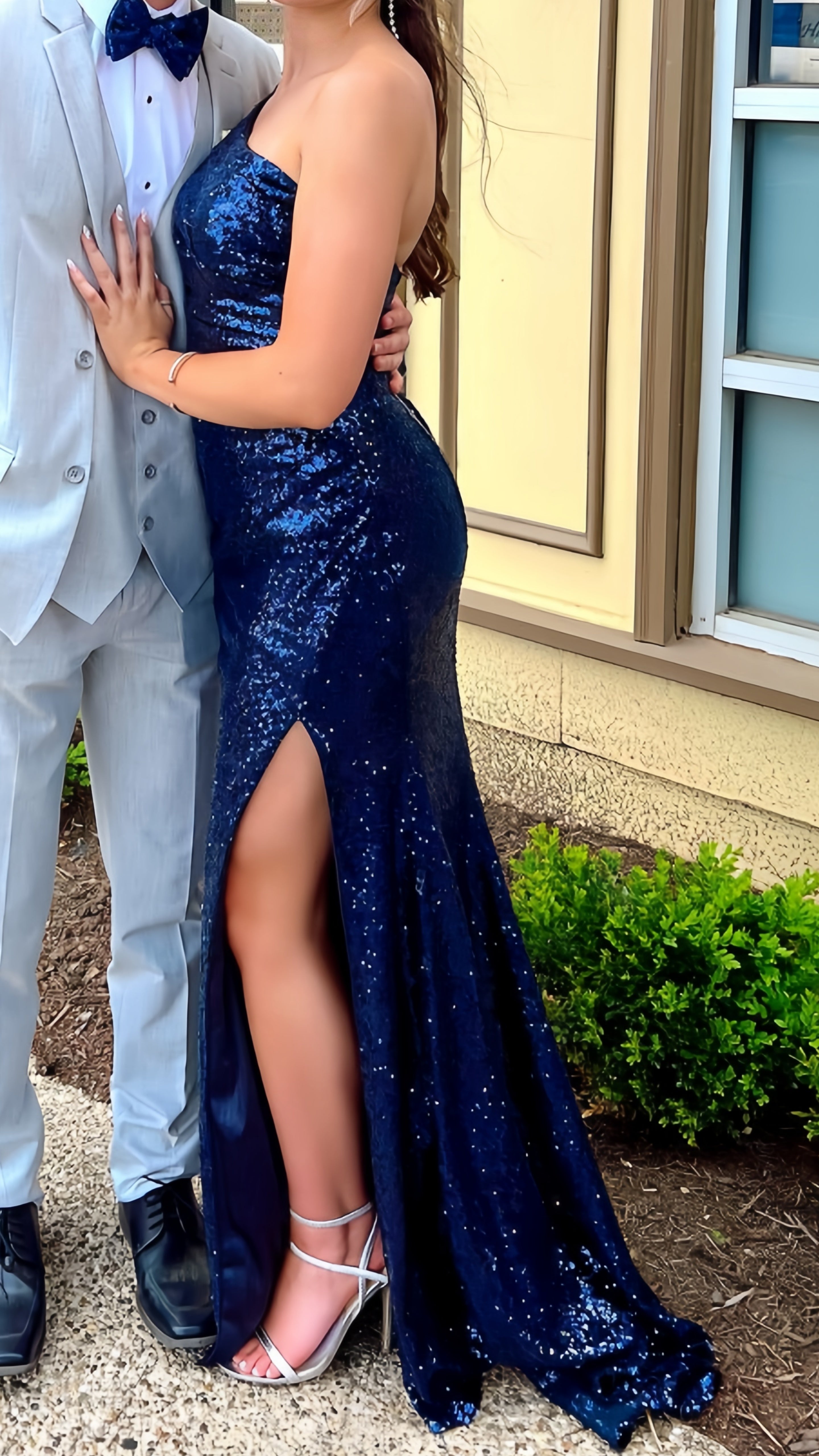 One Shoulder Blue Sequin Long Party Dress, Senior Prom Dresses, HZ0307