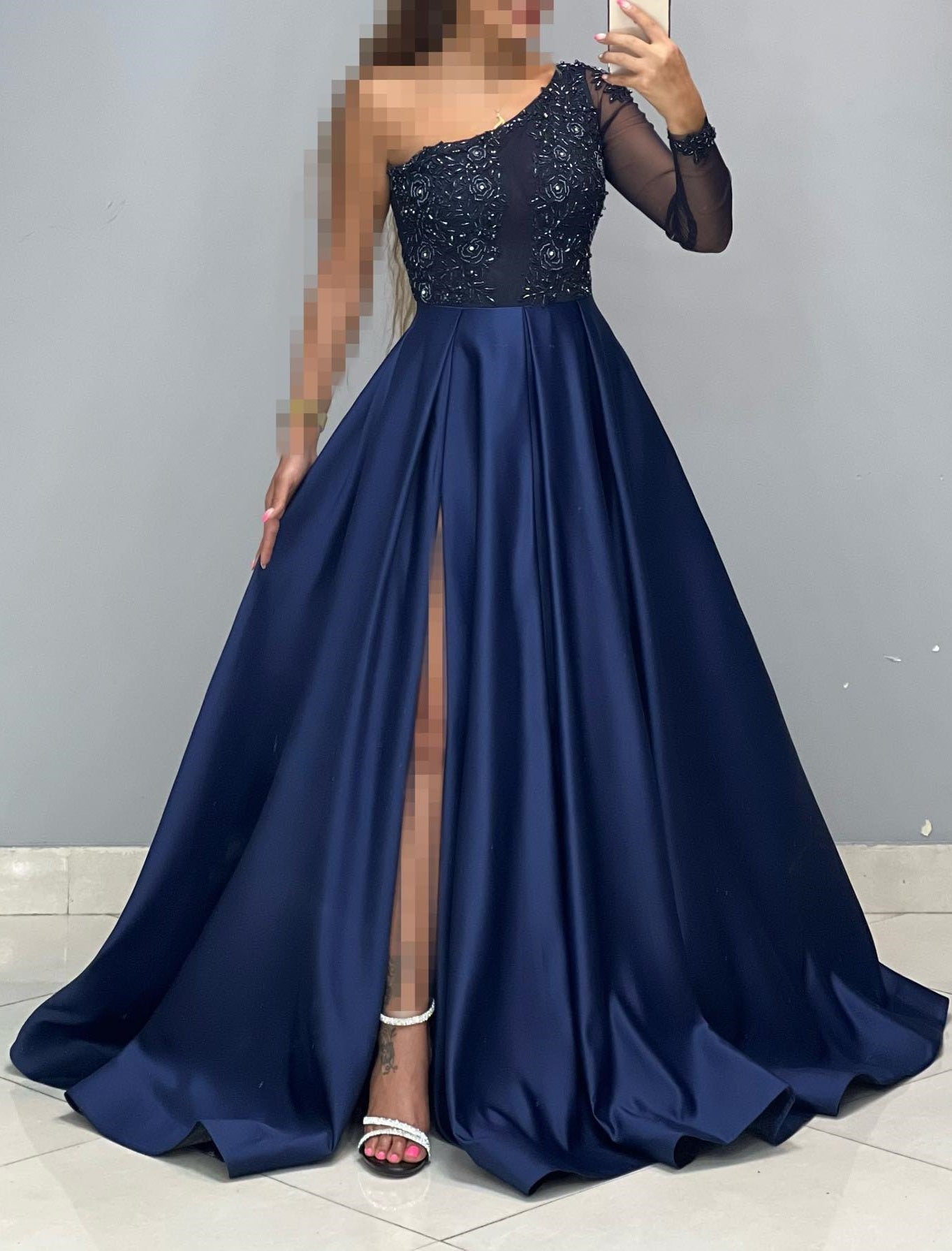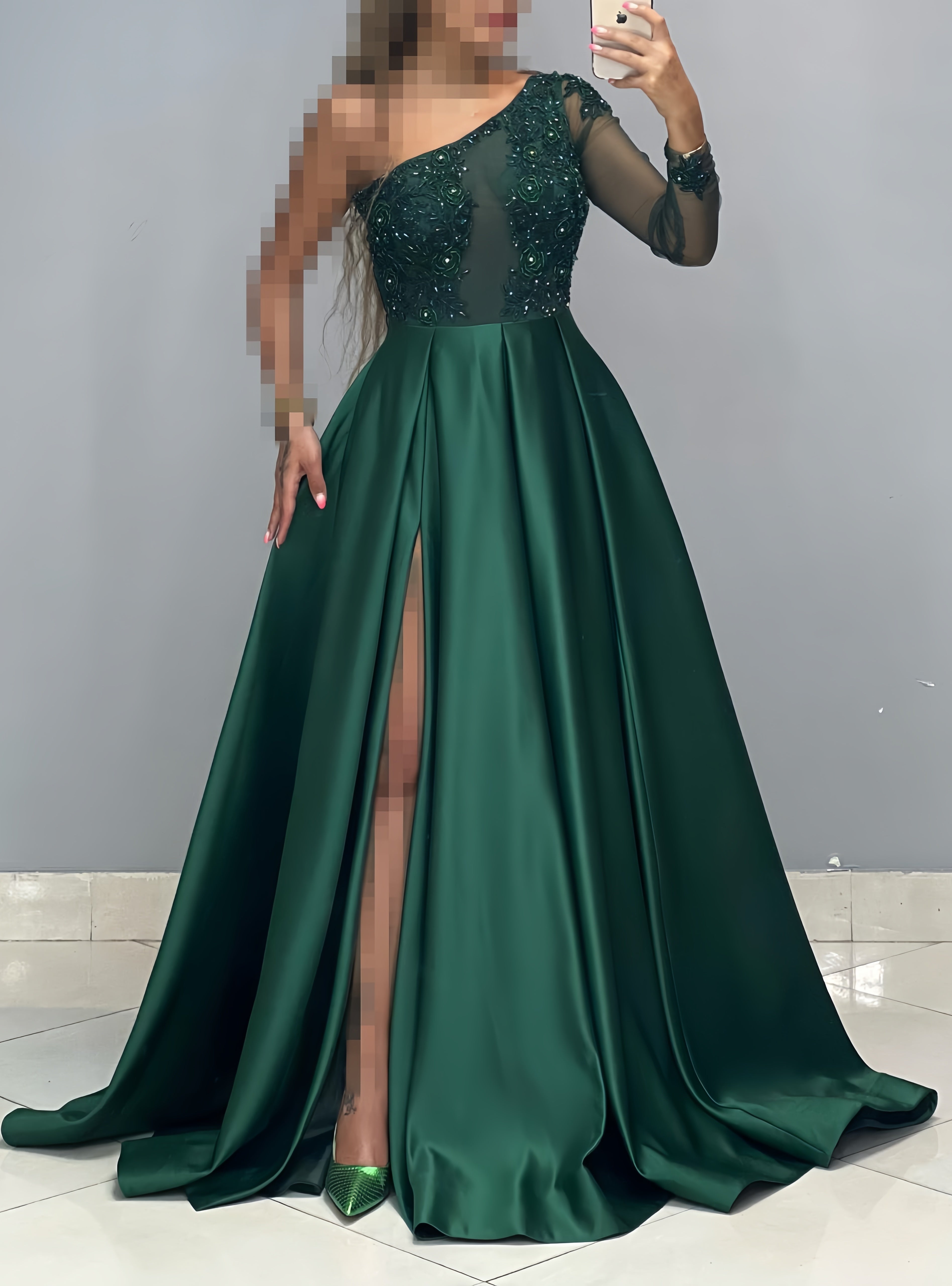 One Sleeve Beaded A-Line Prom Dress, Women Party Dress, HZ0307
