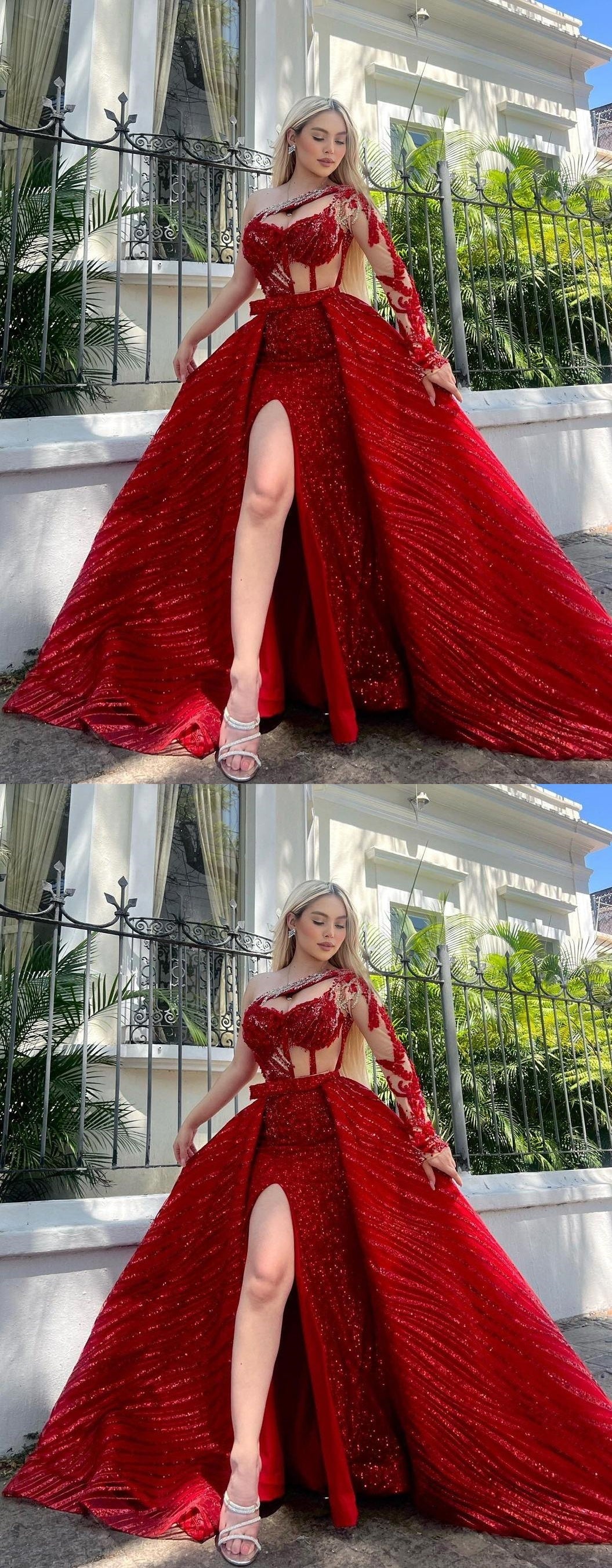 Red Sequin Applique Evening Formal Gown, Long Party Prom Dresses, HZ0307