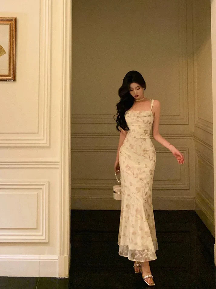 Sexy Sheath Straps Floral Satin Prom Dresses Birthday Outfits Evening Gown, HZ0307
