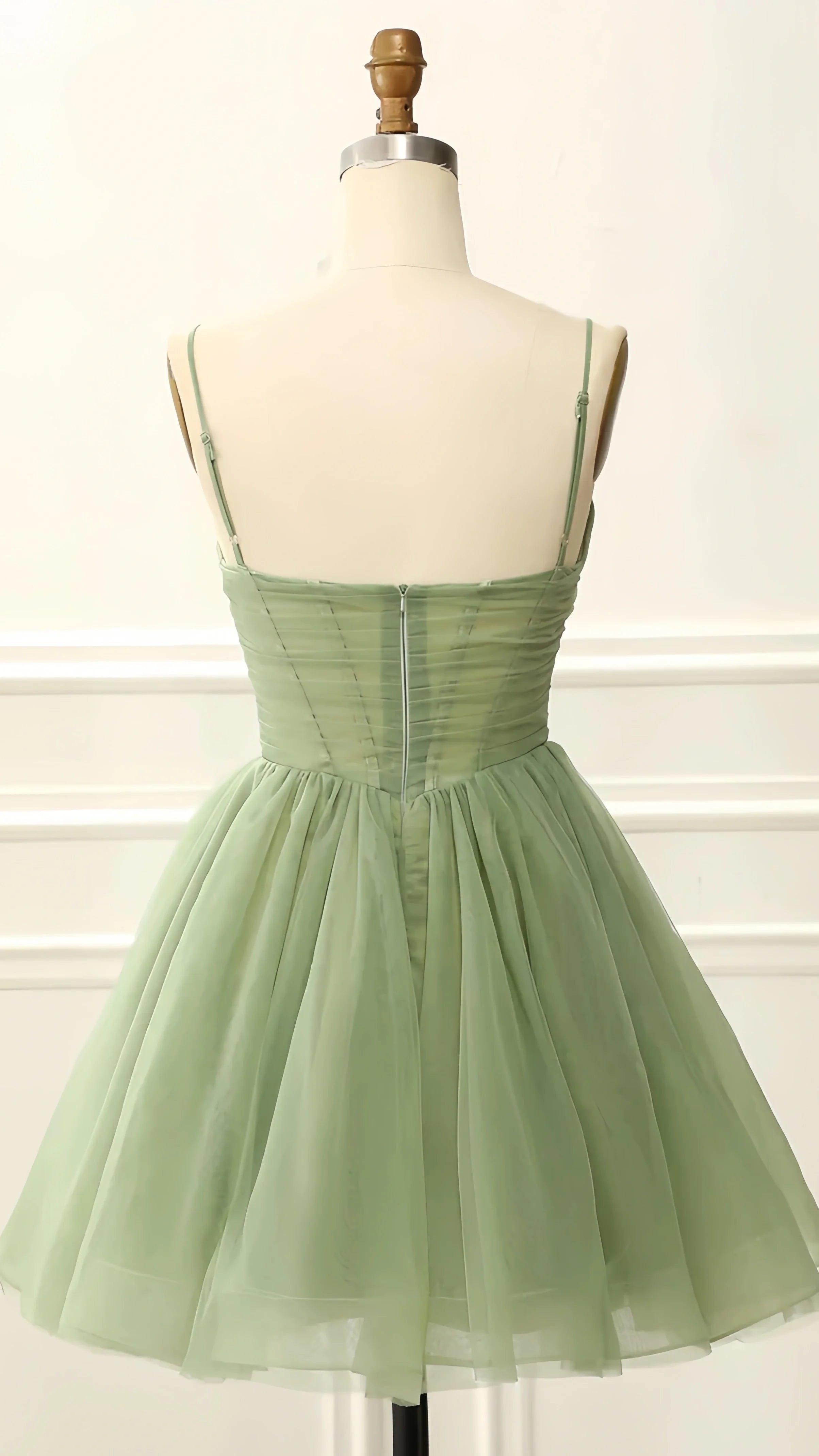 Spaghetti Straps A-line Tulle Homecoming Dress V Neck Short Above Knee Tulle Hoco HZ0307