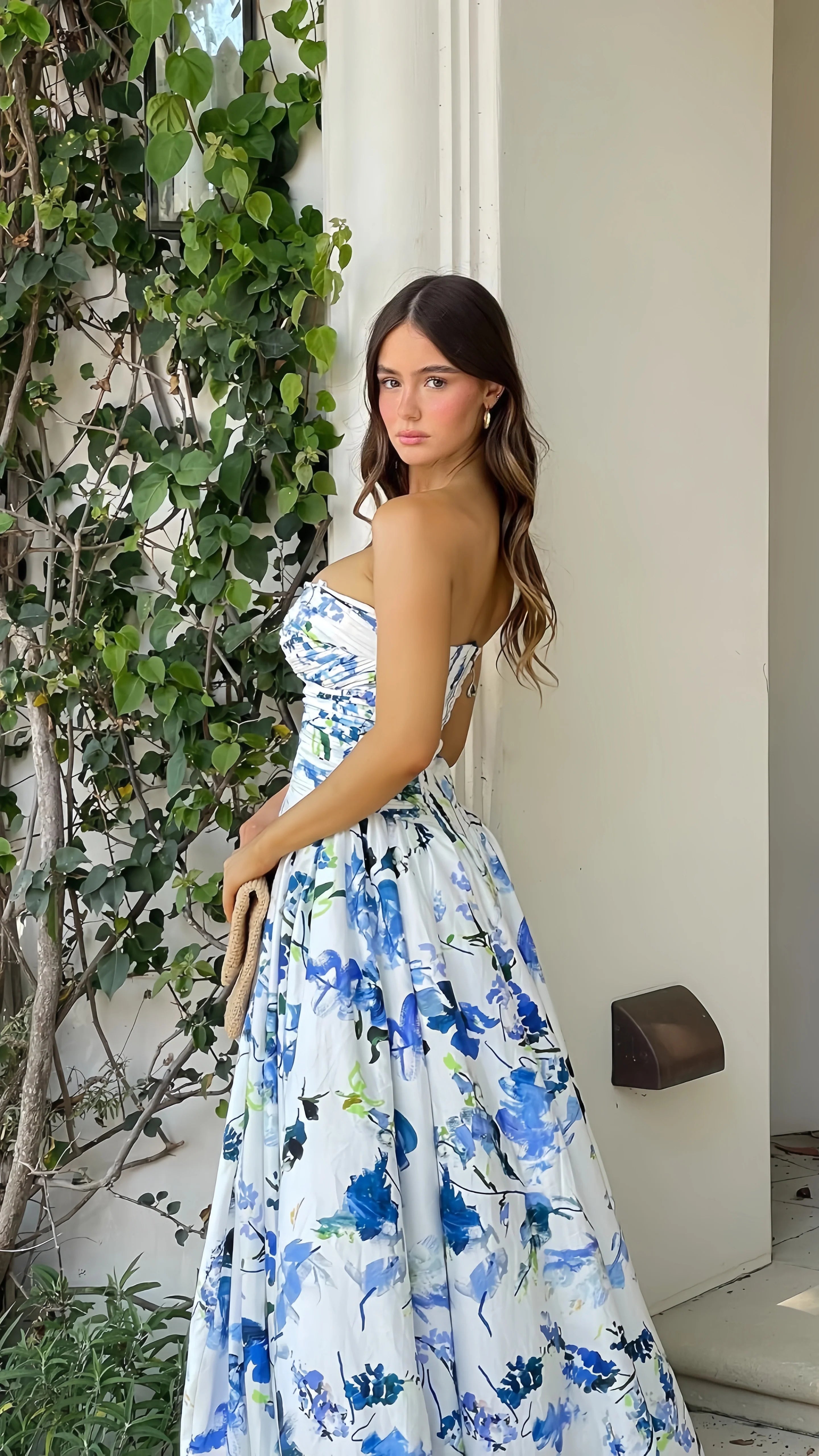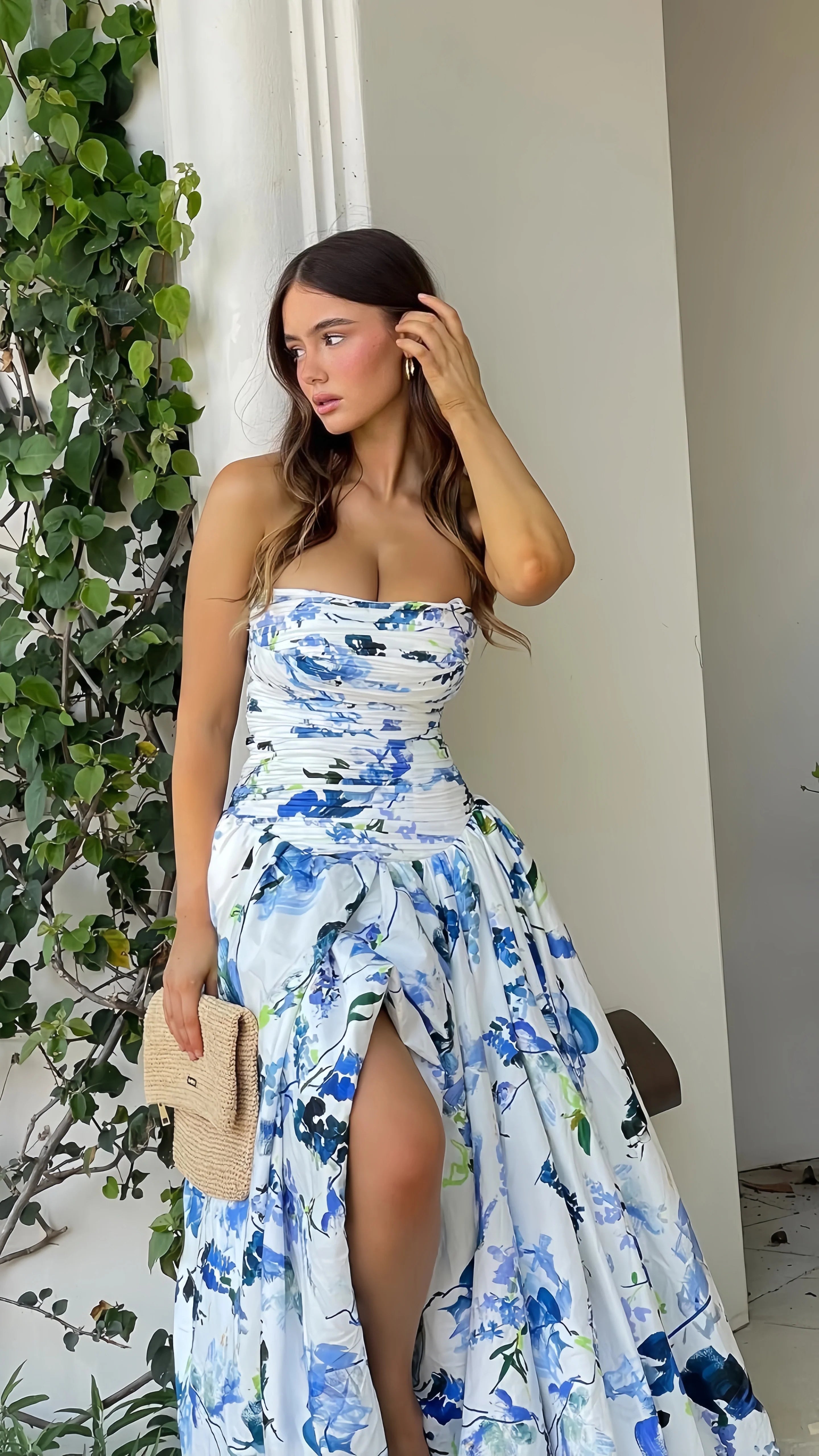 Spring Floral Strapless Prom Dresses Split Evening Party HZ0307