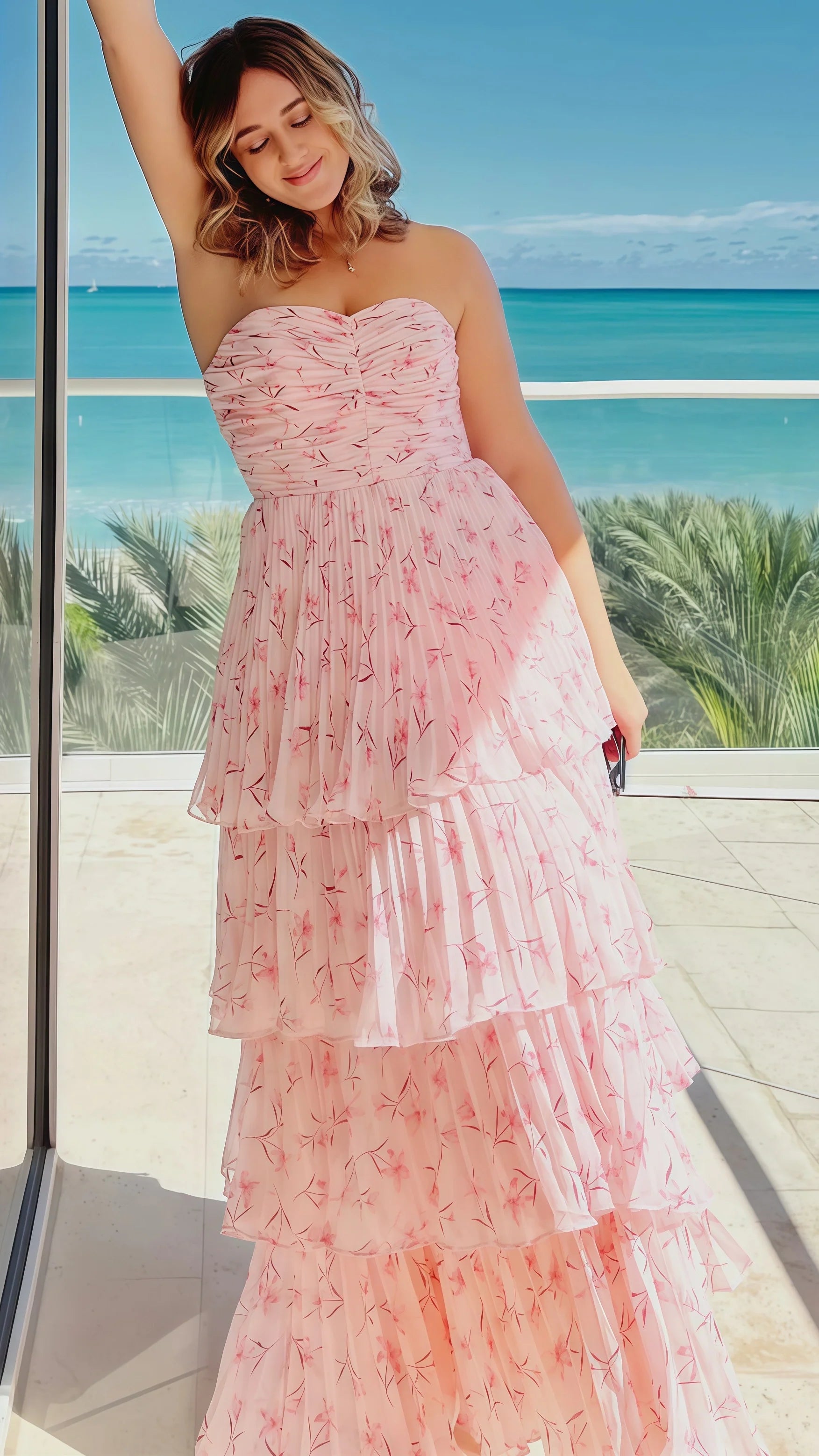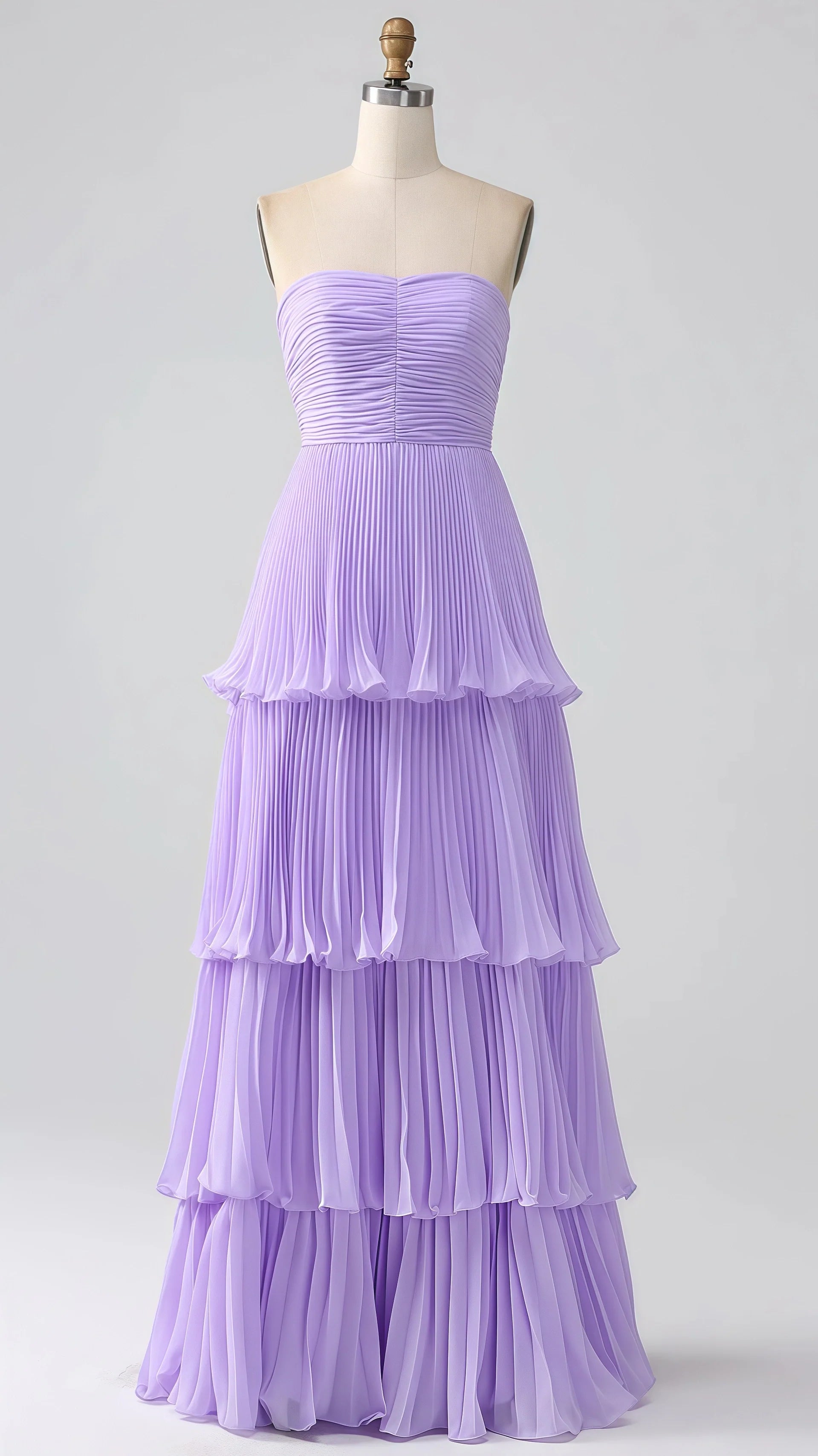 Strapless Chiffon Ruffle Prom Dress, Sleeveless Long Evening Party Gown, HZ0307
