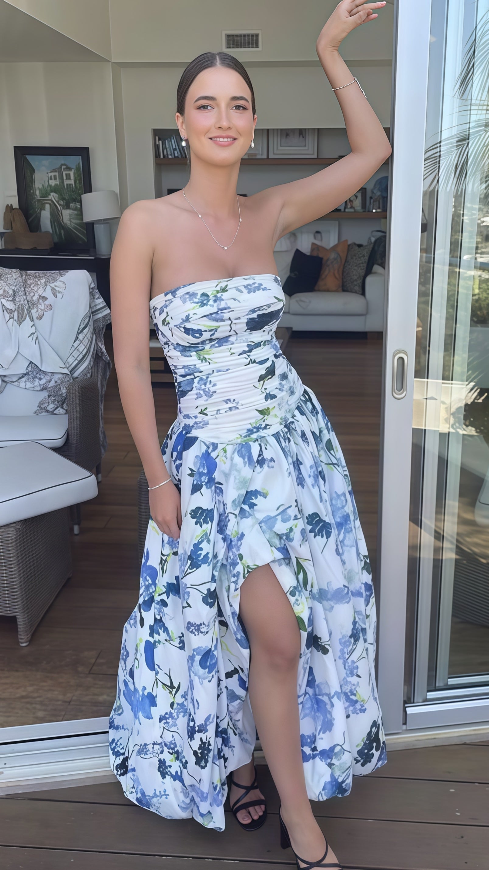 Strapless Floral Prom Dress, Sleeveless Party Gown, HZ0307